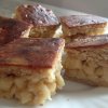 Egy nagy tepsibe 12 kanál étolajat teszünk, melyre a kocka tésztát egyenletesen elosztjuk (nyersen!). A többi hozzávalót (cukor, kefír, tejföl, tej, tojás) kikeverjük, majd a tésztára öntjük. Lefedve készre sütjük kb. 1 óra alatt. Én jénaiban készítettem, alul-felül sütés + légkeverés üzemmódban, kb. 180 – 200 fokon. A sütés végével levettem a jénai tetejét és még 15 percig felső pirítással sütöttem, hogy egy kicsit megpiruljon.