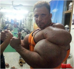 De van ám ennek a testépítős történetnek egy elképesztő, számomra gyomorforgató verzója is. Francba a helyes étkezéssel és a fárasztó edzőtermi gyúrásokkal. Elő a Synthol-t és a tűt! A Synthol egy olyan olaj, amit a testépítők (vagy épp a nem testépítő pasik) az izmaikba fecskendeznek, megnövelve azok térfogatát. A folyamatos “adagolás” következtében az izom felfúvódik, mint egy lufi… Ez amolyan “helyi botox”… Egyesek egyébként már egészen odáig is elmennek, hogy bármilyen olajat befecskendeznek a testükbe, ami a kezük ügyébe kerül! Még belegondolni is szörnyű… Én a tökmagolajat a salátára teszem, nem a párom bicepszébe nyomom…. Ez az egész horrorisztikus, ráadásul egészségtelen és veszélyes is.